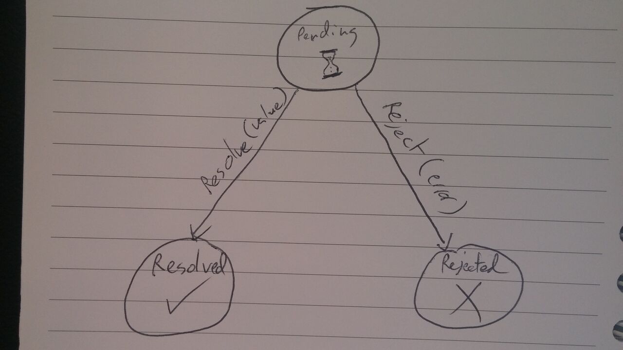 There is a really easy-to-use, ready-made construct called Promises that has been getting more and more popular in the JavaScript world. JavaScript devs were using them first to deal with AJAX requests, but you can use them for all types of asynchronous behavior, including localStorage, animations, and more. A promise is just a very simple state machine. It has an initial state and two final states.